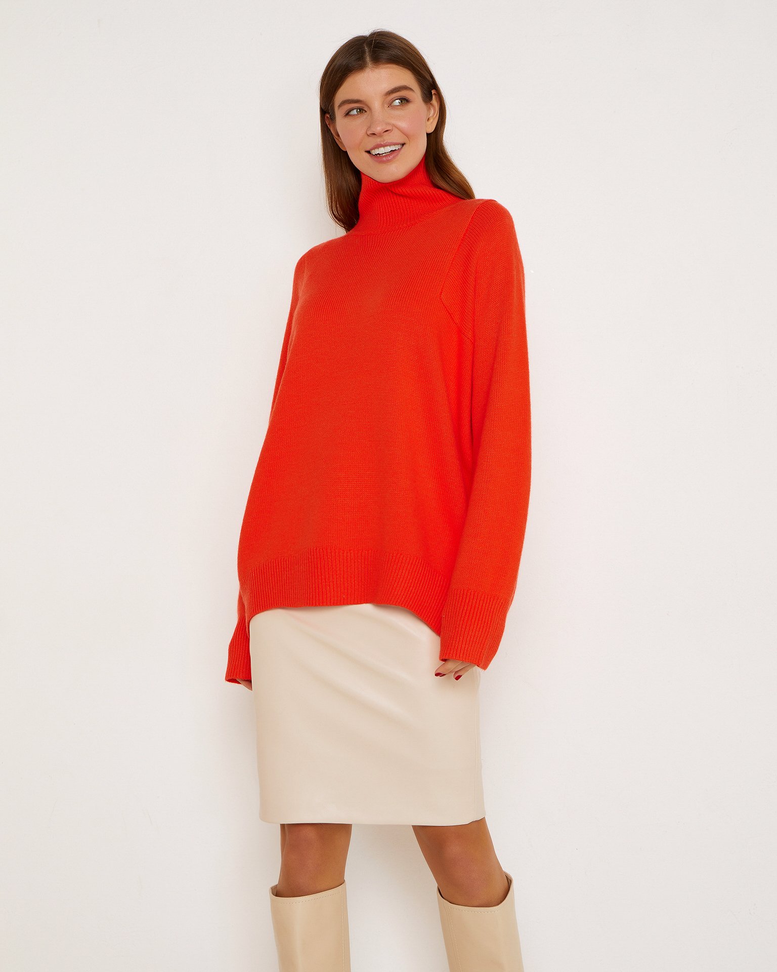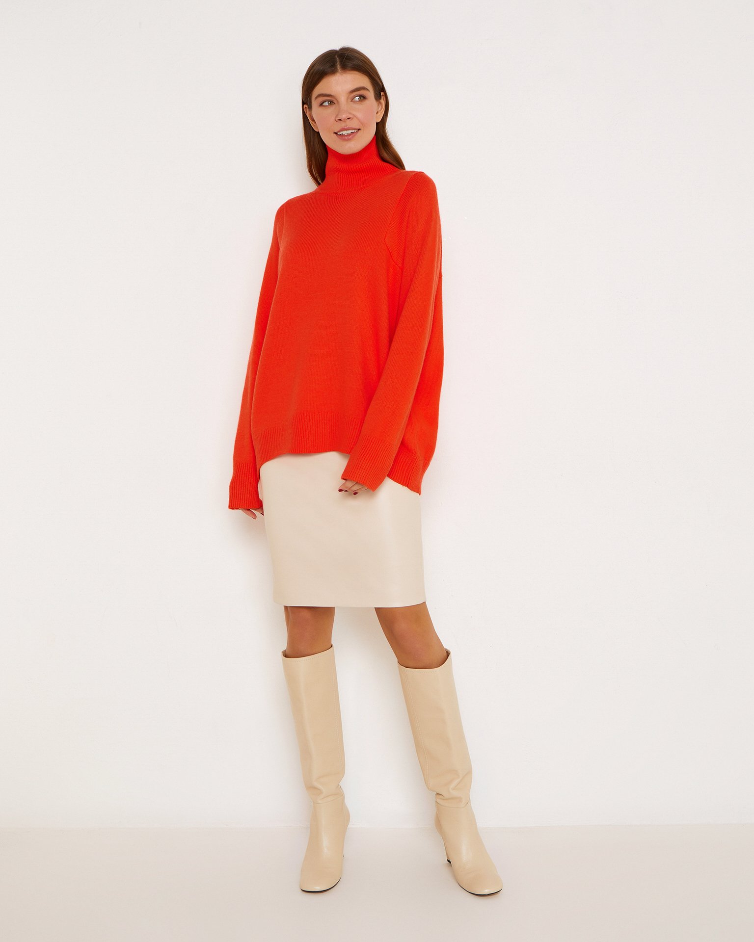 Юбка из экокожи прямого кроя длиной до колена. Посадка на талии, застежка и небольшой разрез сзади. Эта модель станет акцентом любого аутфита, поэтому стилисты советуют сочетать юбку из экокожи с верхом нейтральных оттенков. Для официальных встреч выбирайте рубашки и элегантную обувь или сочетайте эту модель с футболками и кедами для прогулок. Подклад: 100% полиэстер Параметры модели: рост 175 см, грудь 82 см, талия 63 см, бедра 90 см.