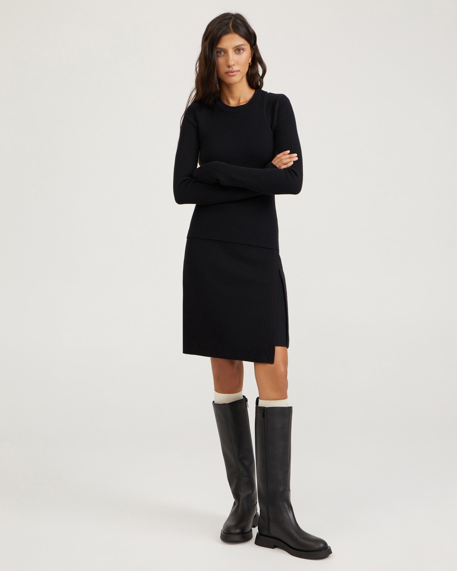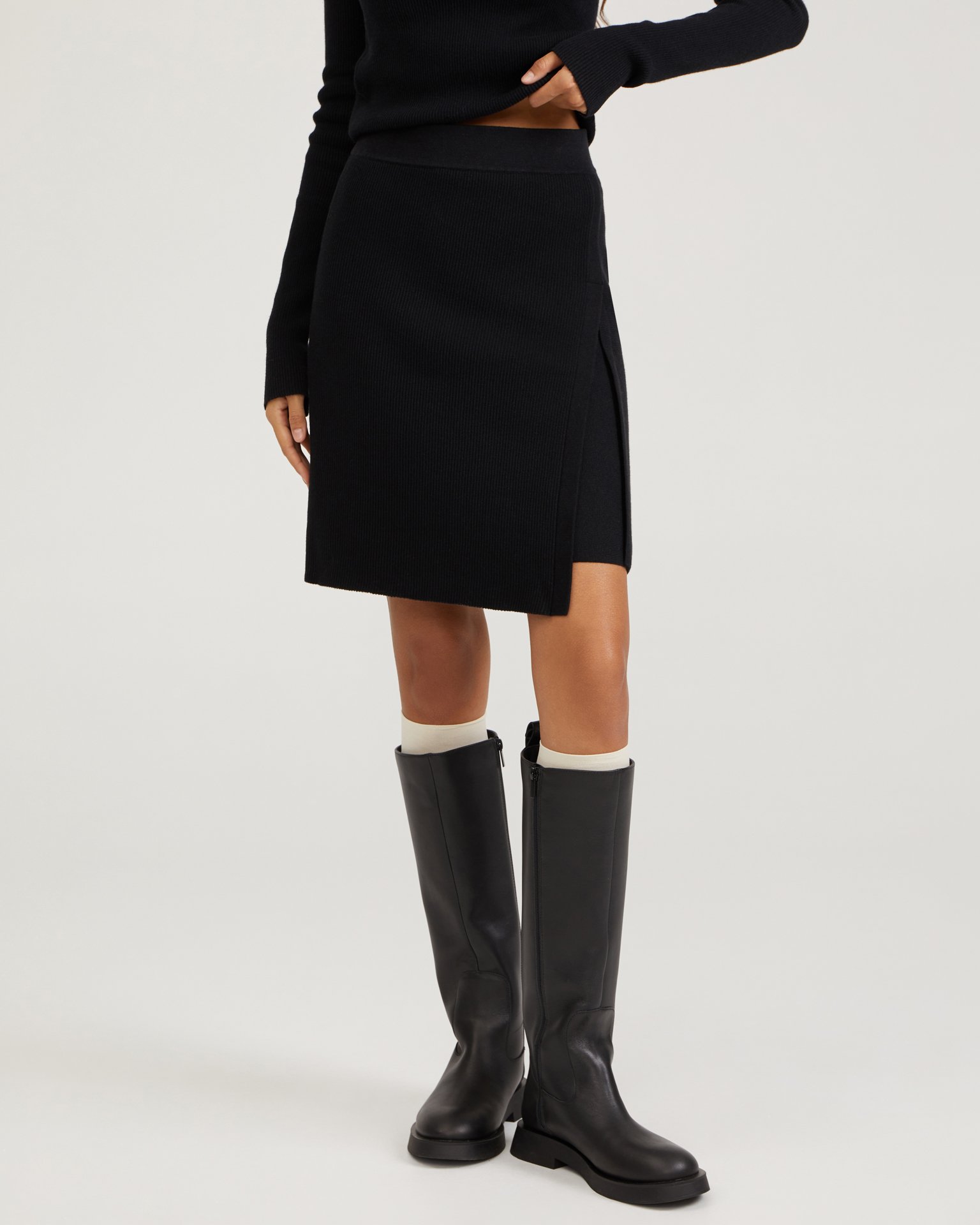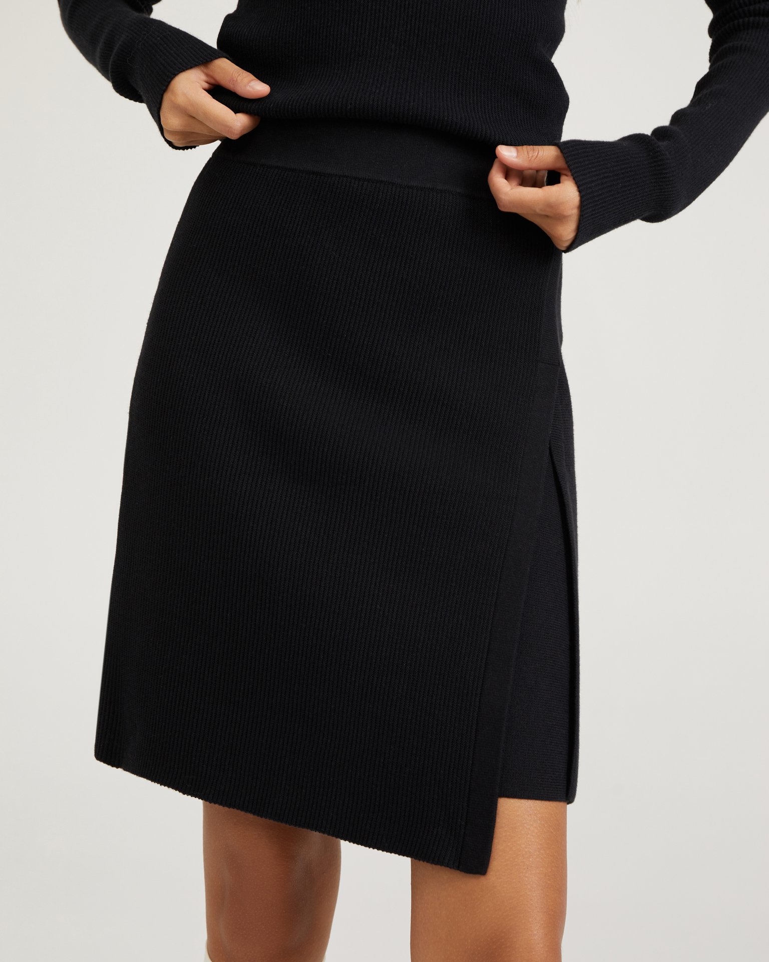 Асимметричная трикотажная юбка с высокой посадкой на мягкой резинке. Преимущество юбки-трапеции заключается в том, что она садится на любую фигуру и не выходит из моды. Для составления комплекта выбирайте лонгслив из той же ткани. Состав: 50% хлопок, 50% вискоза Параметры модели: рост 172 см, грудь 80 см, талия 59 см, бедра 89 см