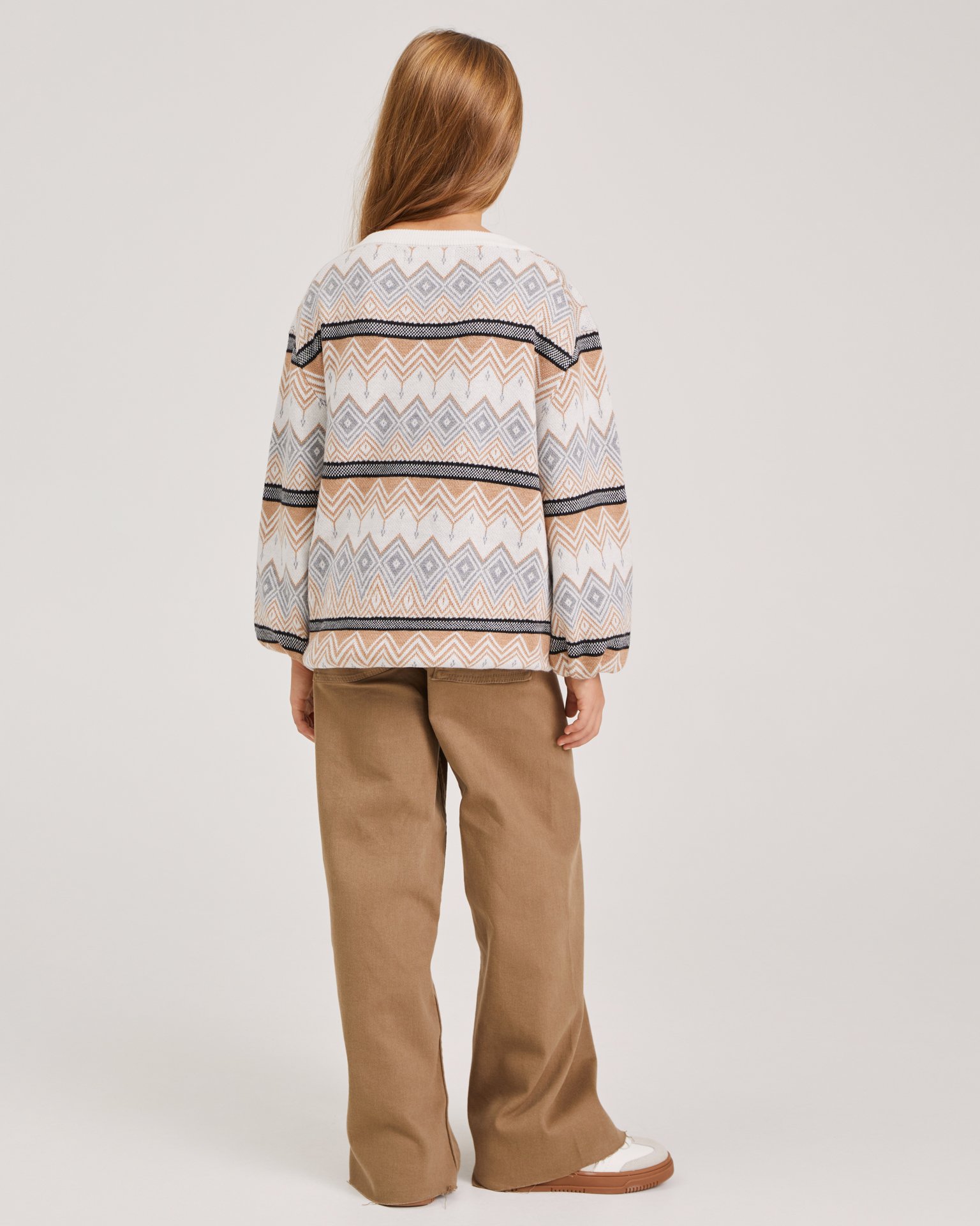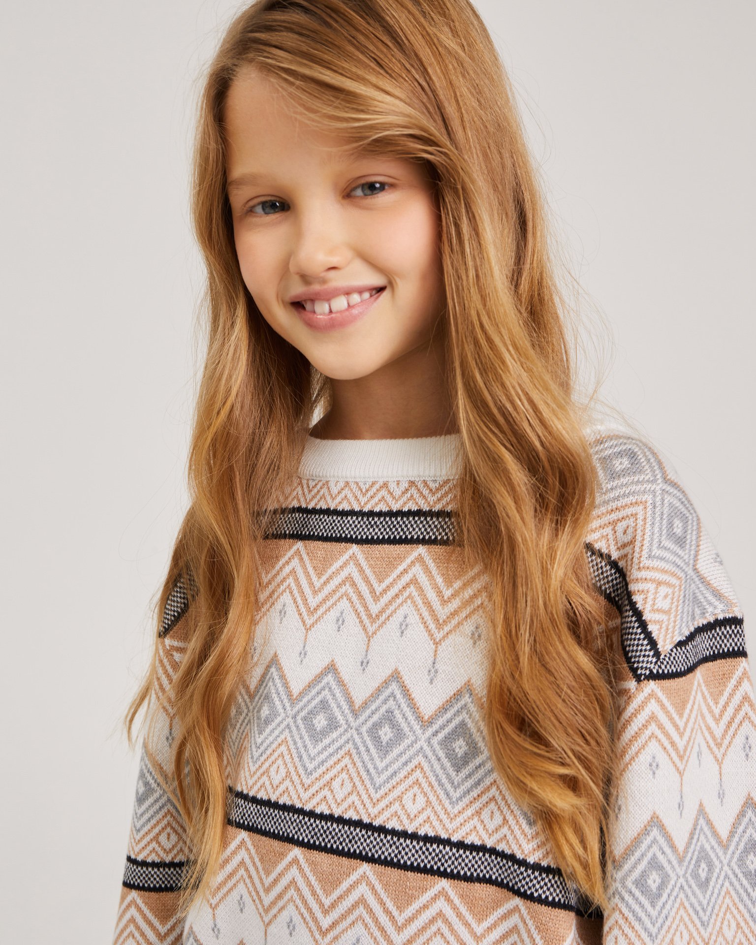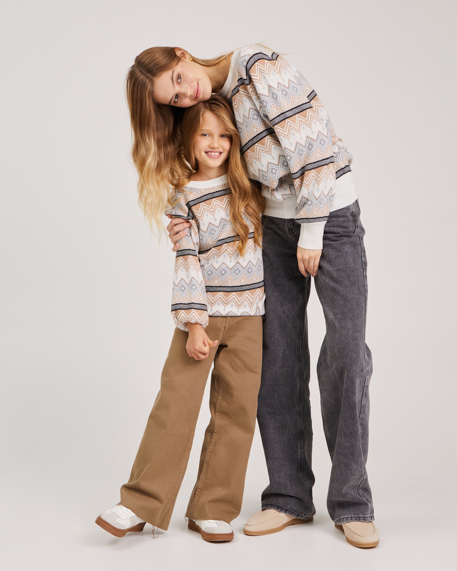 Мы вдохновились идеей создания парных семейных луков и выпустили джемпер из коллекции бренда в детском варианте. Из деталей: геометрические узоры, шерсть мериноса в составе, спущенная линия плеча и объемные рукава.Выбирайте джемпер с таким же принтом из коллекции To Be Blossom для взрослых, чтобы стать еще ближе. Состав: 10% шерсть мериноса, 20% нейлон, 20% акрил, 50% полиэстер