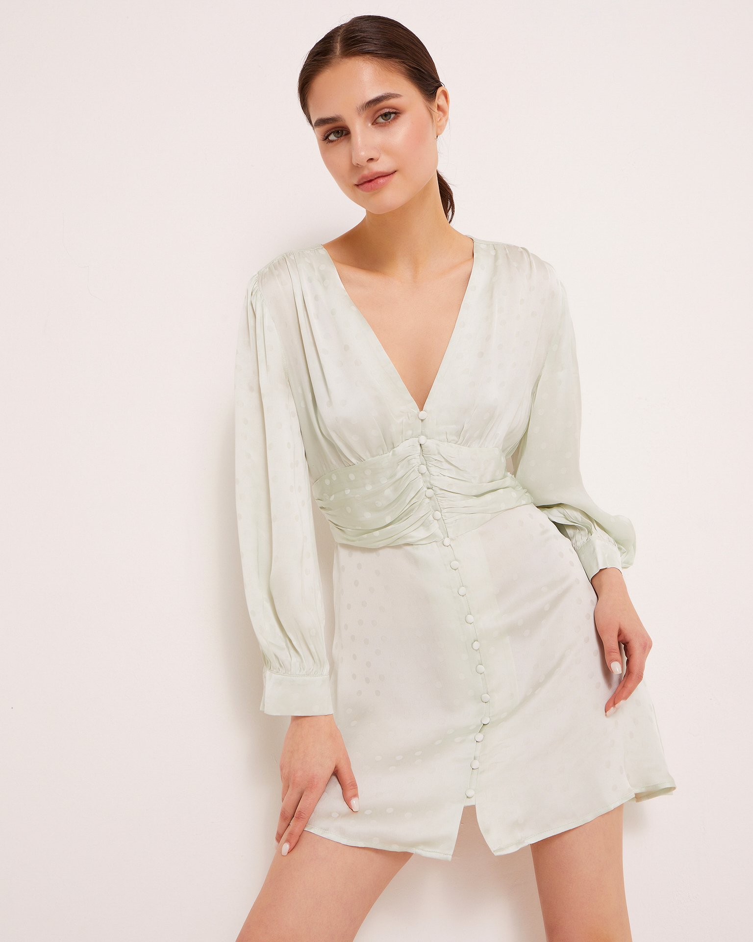 Платье мини с застежкой на пуговицах спереди и V-образным вырезом. Необычный крой верхней части с широким поясом визуально подчеркивает талию. Длинные рукава с манжетами.Летнее короткое платье – musthave сезона. Сочетайте его с сандалями для долгих прогулок по южным городам или с босоножками на каблуках для похода на романтический ужин. Состав: 100% вискоза Параметры модели: Рост 175 см, грудь 82 см, талия 62 см, бедра 93 см