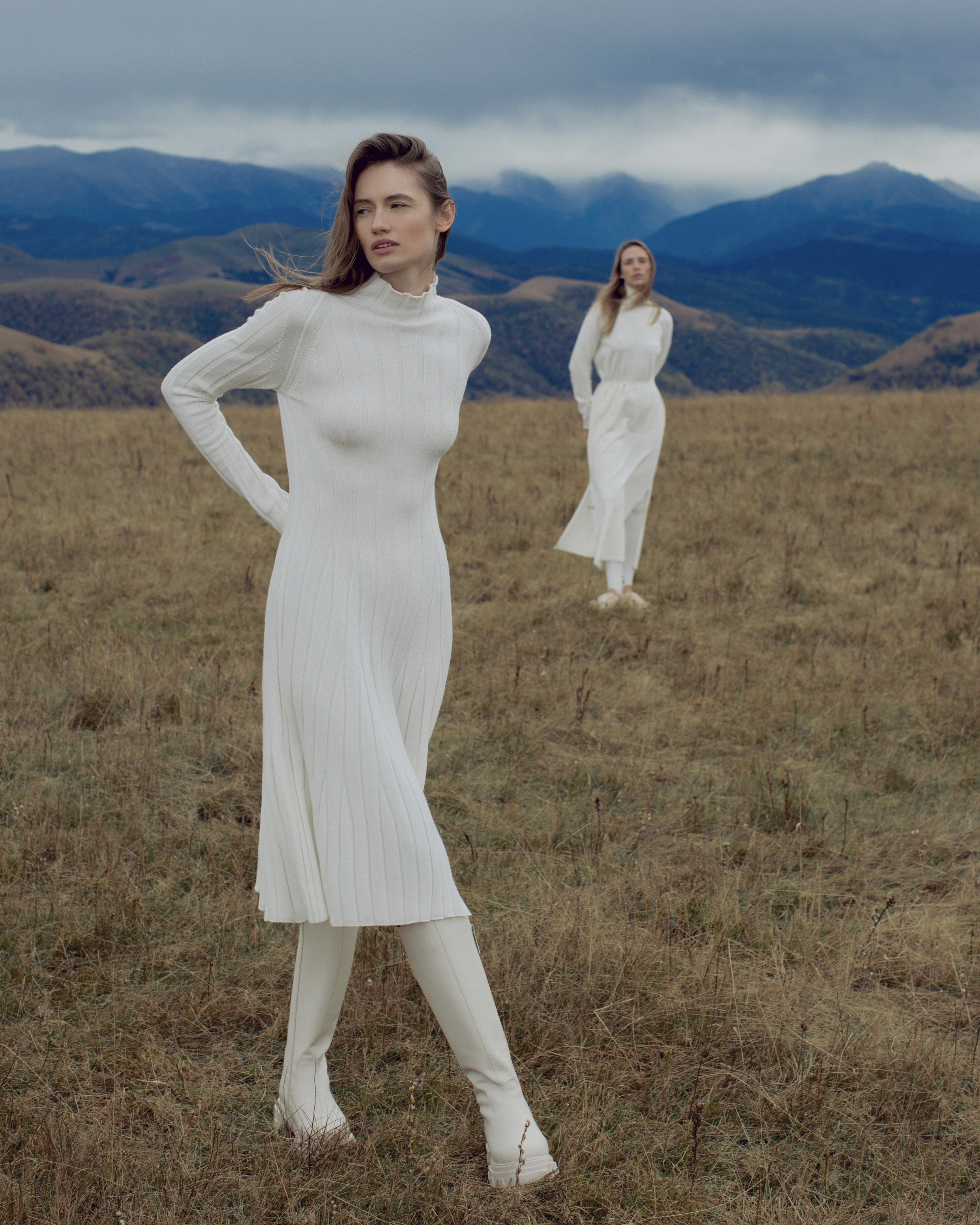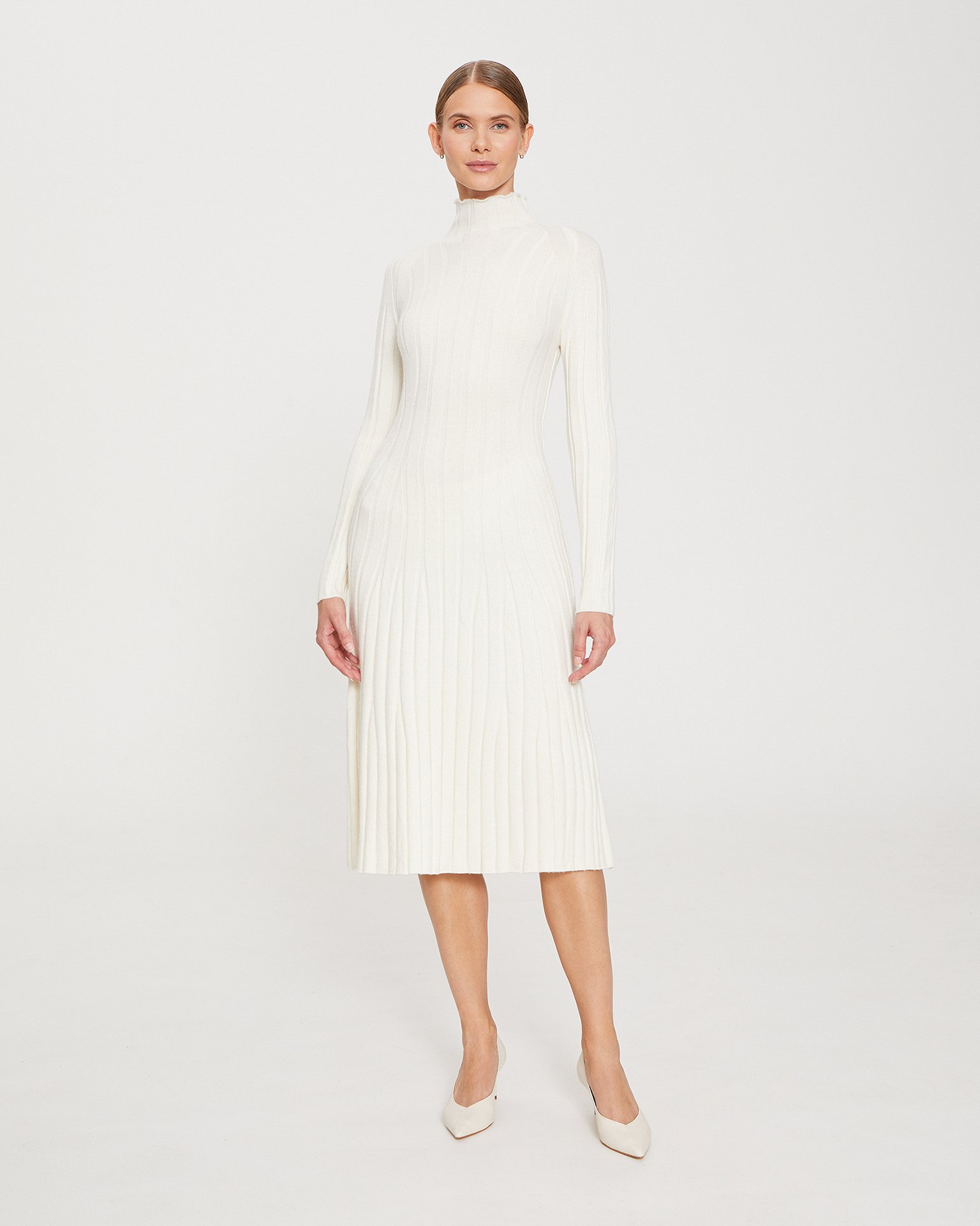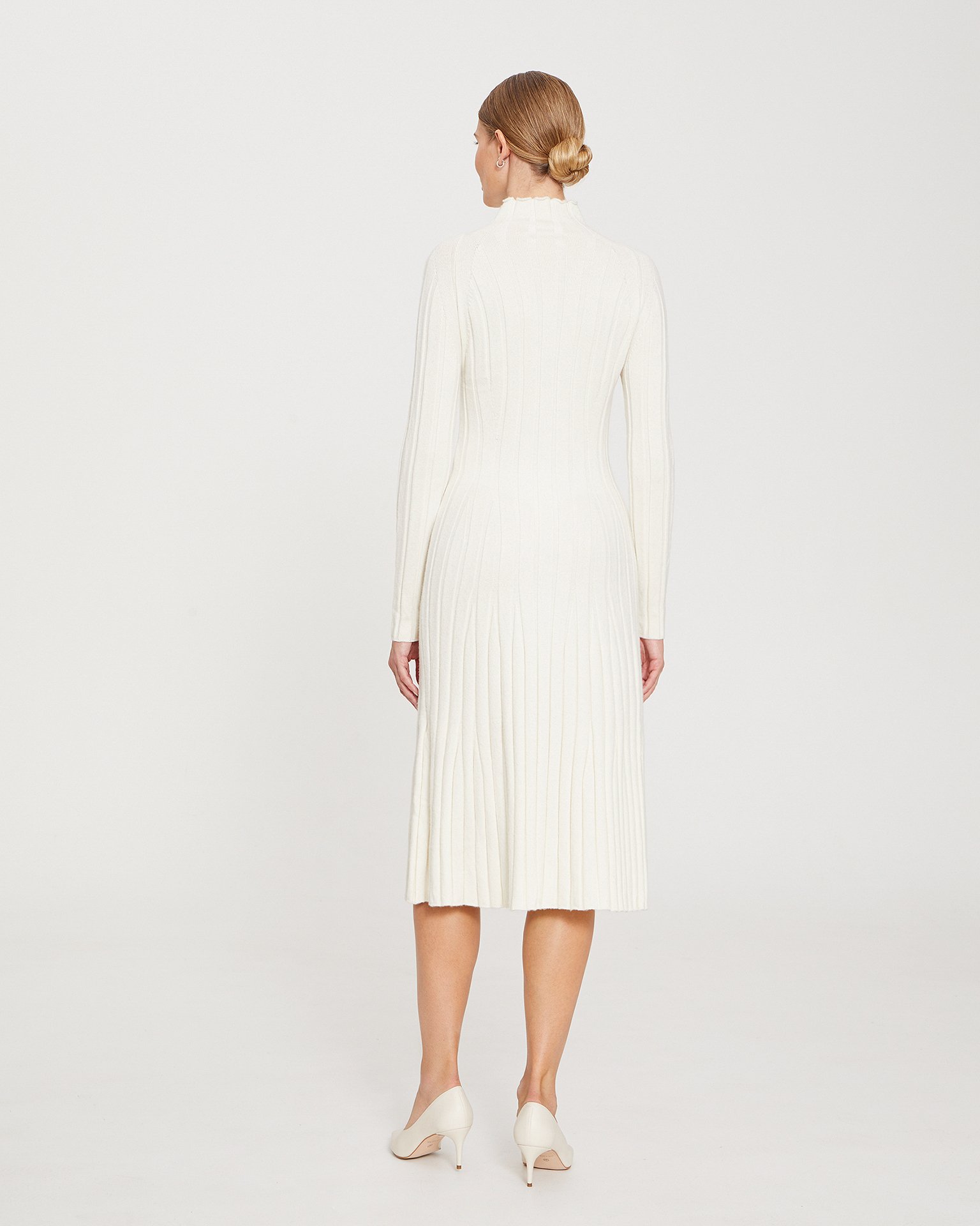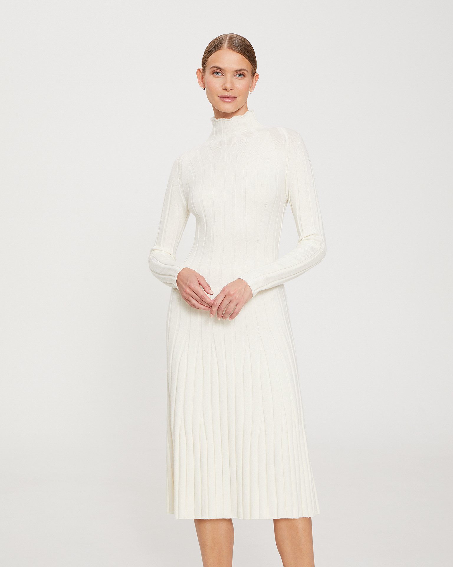 Облегающее платье «лапша» с воротником-стойкой и длинными рукавами. Модель длиной до колена со слегка расклешенной юбкой. Это платье подойдет большинству типов фигур и станет удобным и незаменимым элементом в гардеробе. Вместе с высокими сапогами на невысоком каблуке и сдержанными аксессуарами это отличный вариант для похода в офис. Для повседневной жизни сочетайте с лодочками или кроссовками и создавайте разные образы. Параметры модели: рост 175 см, грудь 82 см, талия 62 см, бёдра 93 см.
