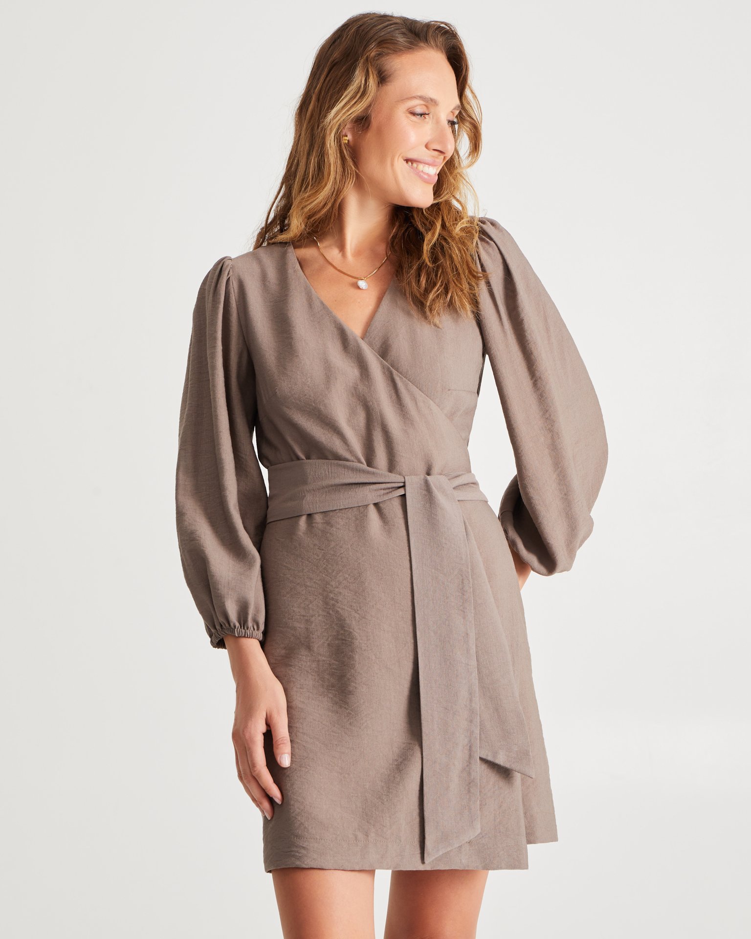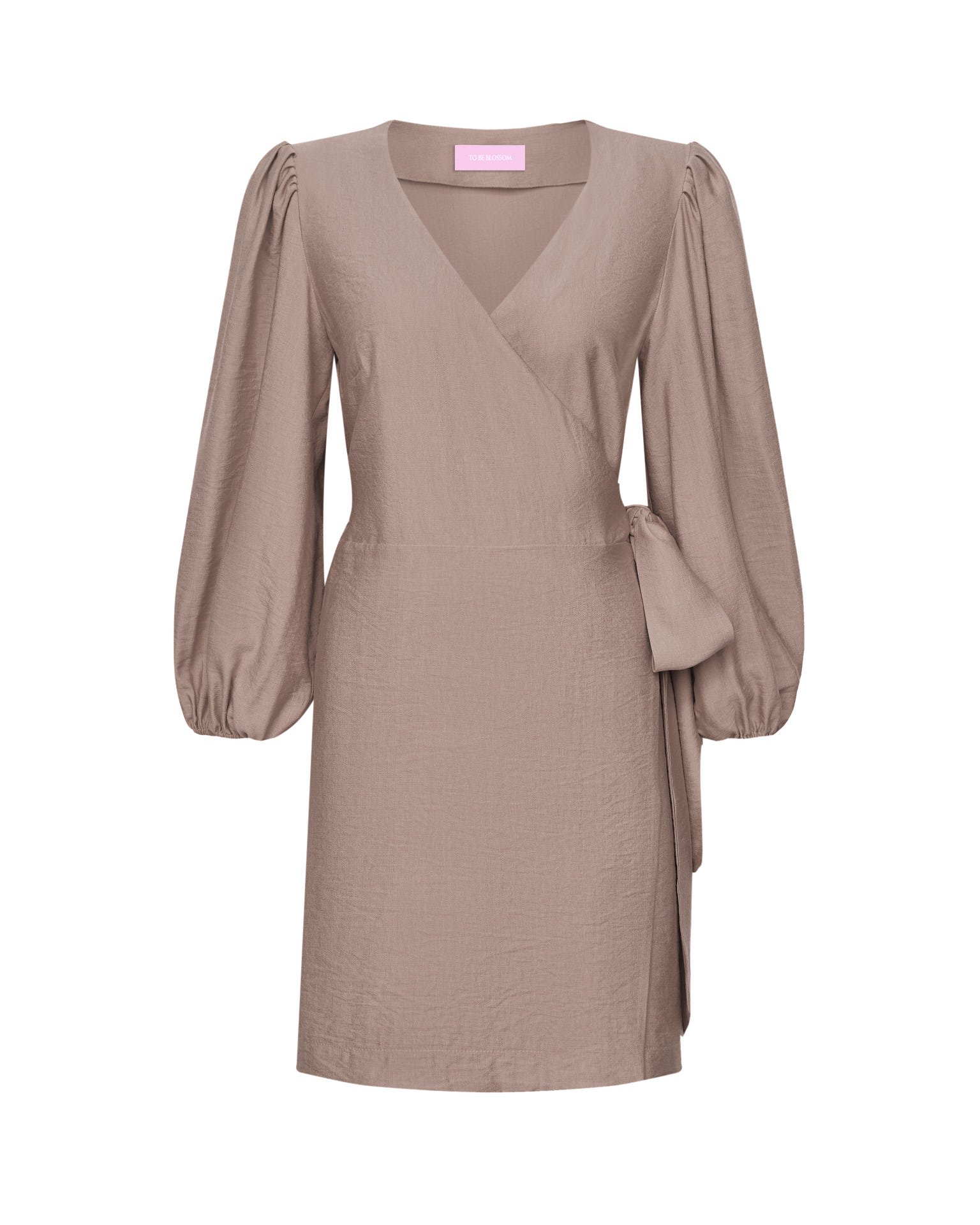 Короткое платье с запахом. V-образный вырез, длинные рукава, прямой крой. Однотонное платье с запахом, которое можно сочетать с любимыми кедами или обувью на каблуках, дополнить элегантным жакетом или кожанной курткой.