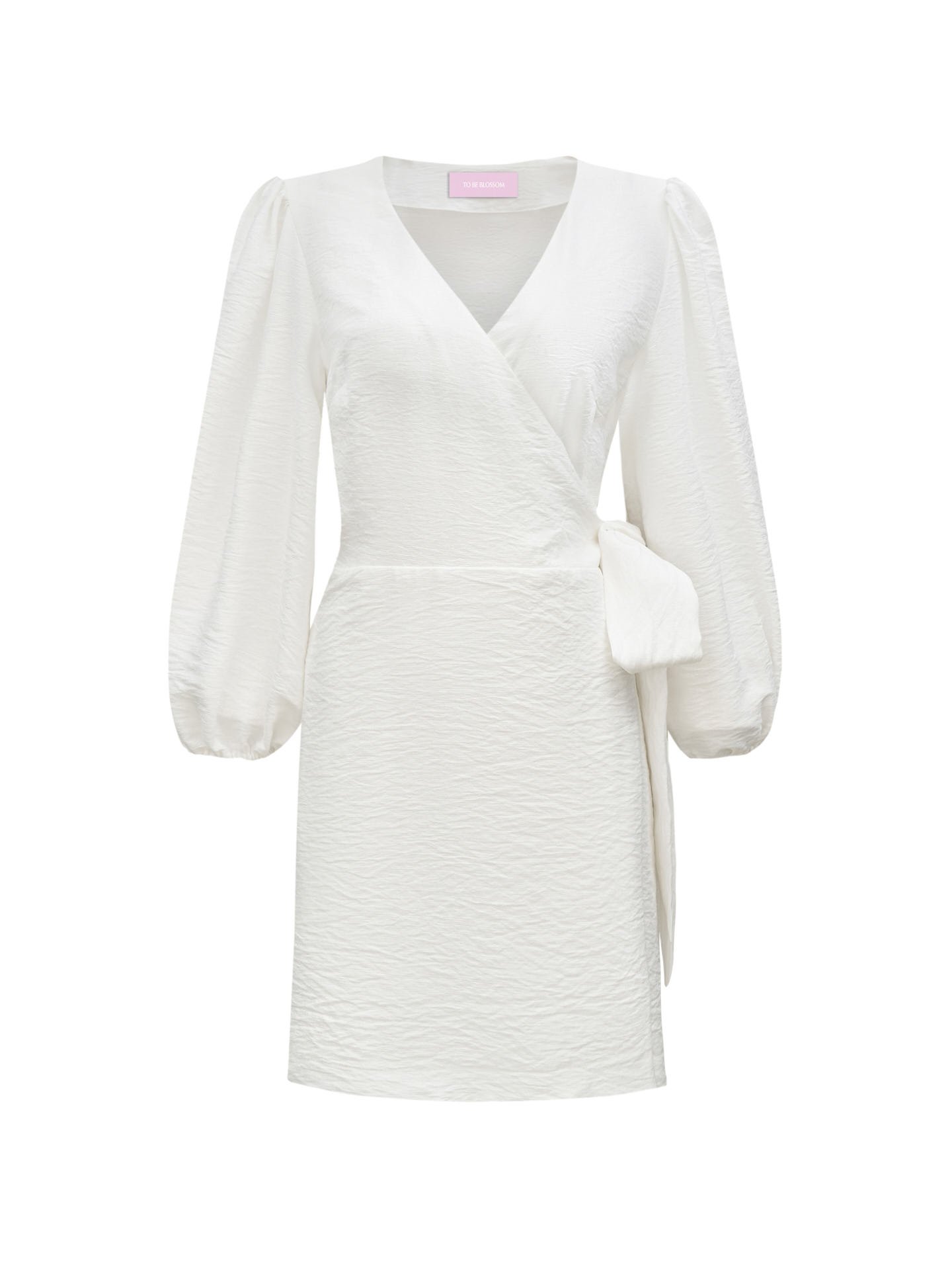 Короткое платье с запахом. V-образный вырез, длинные рукава, прямой крой. Однотонное платье с запахом, которое можно сочетать с любимыми кедами или обувью на каблуках, дополнить элегантным жакетом или кожанной курткой.