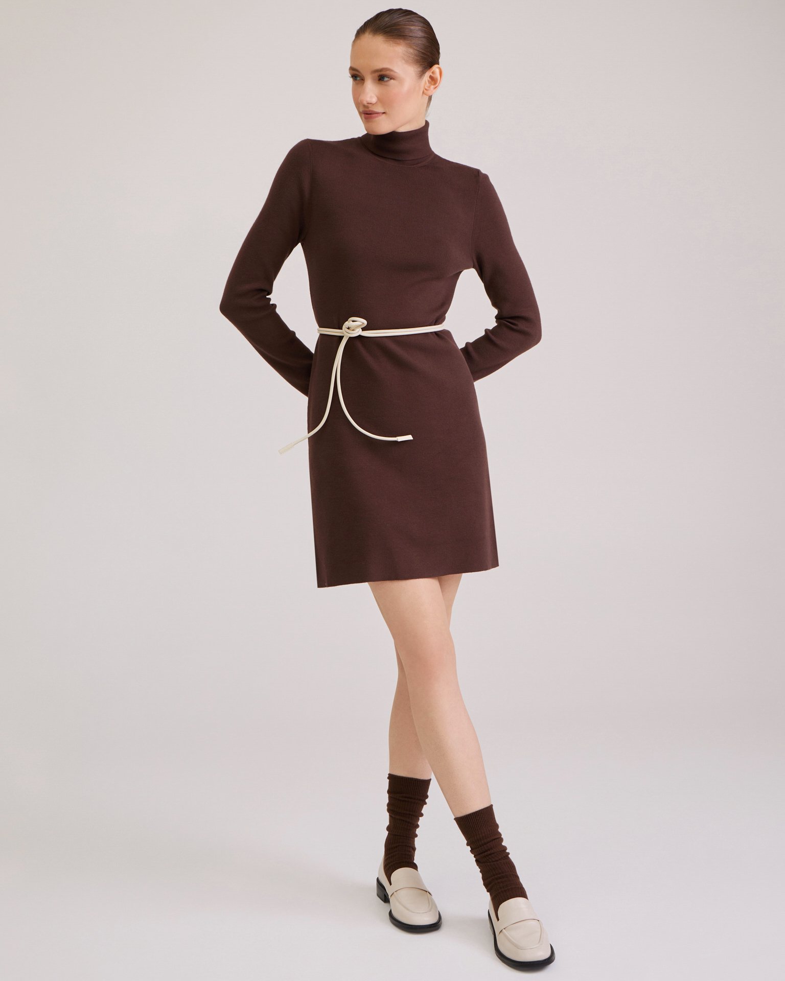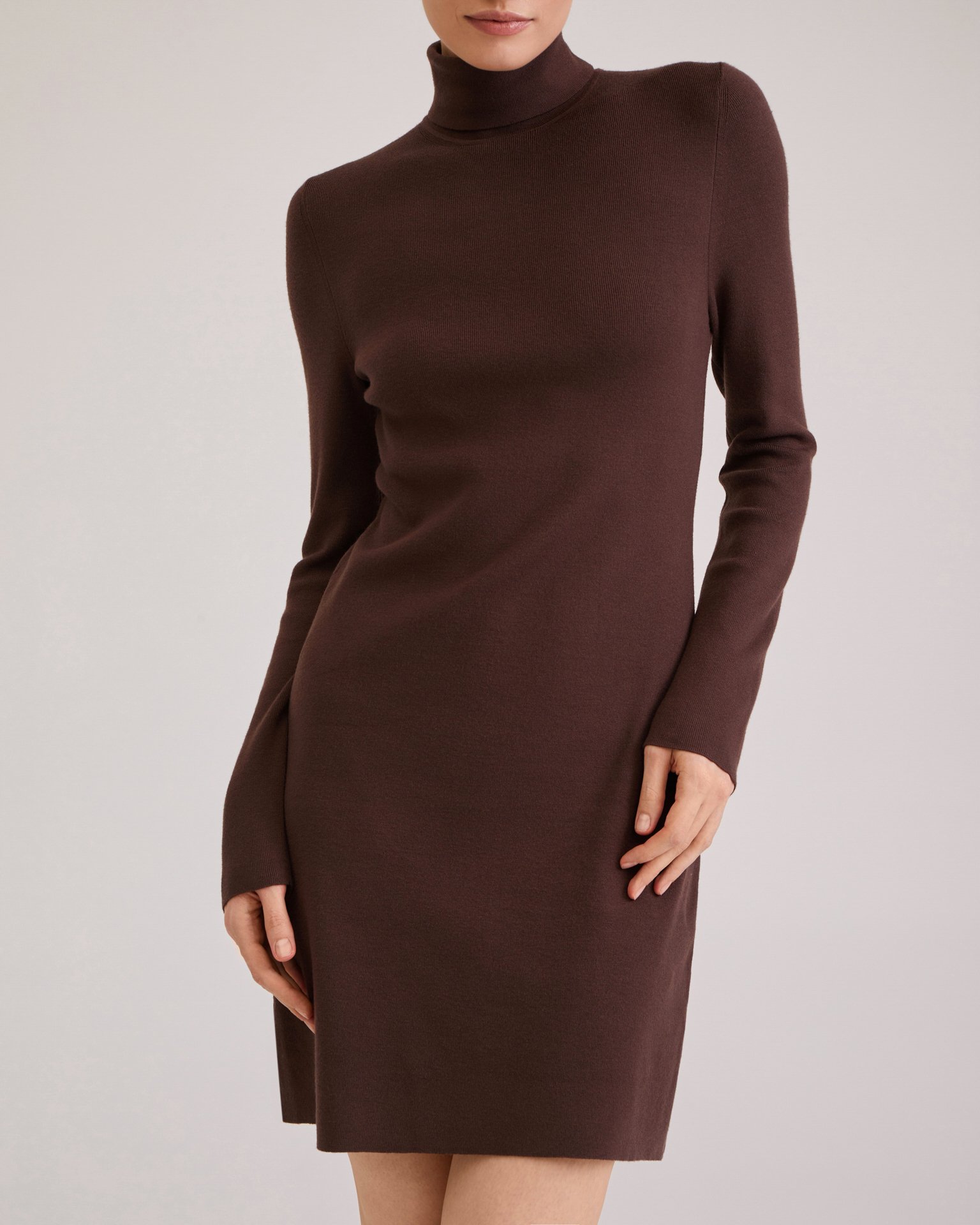 Полуприлегающее базовое платье с длинным рукавом и высоким воротником-стойкой. Ничего лишнего - только трикотаж, приятно обволакивающий тело. Стилизуйте как угодно: в более женственном стиле - с любимым пальто или в маскулинном варианте - с объемным бомбером или косухой. Параметры модели: рост 175 см, грудь 82 см, талия 62 см, бедра 93 см.