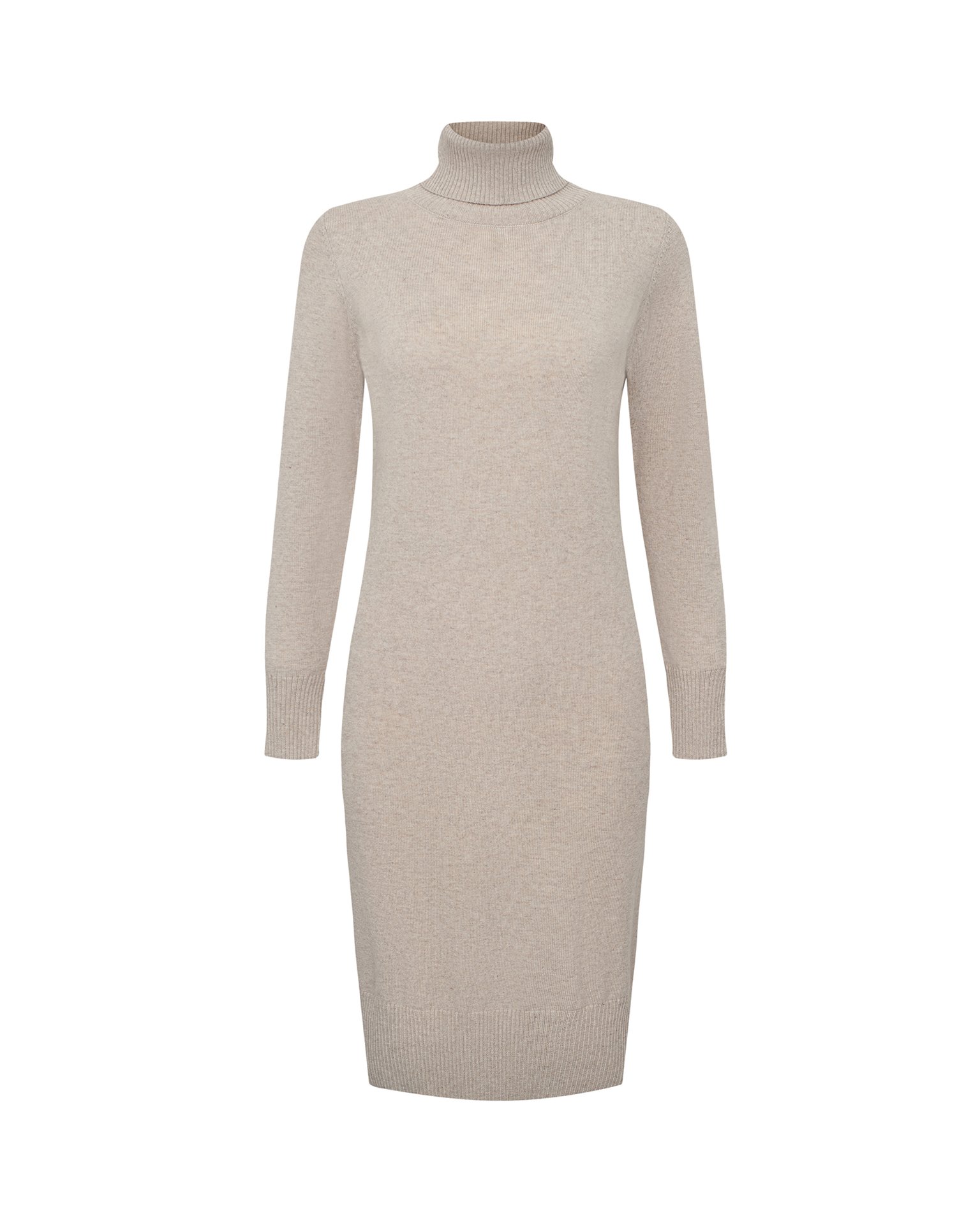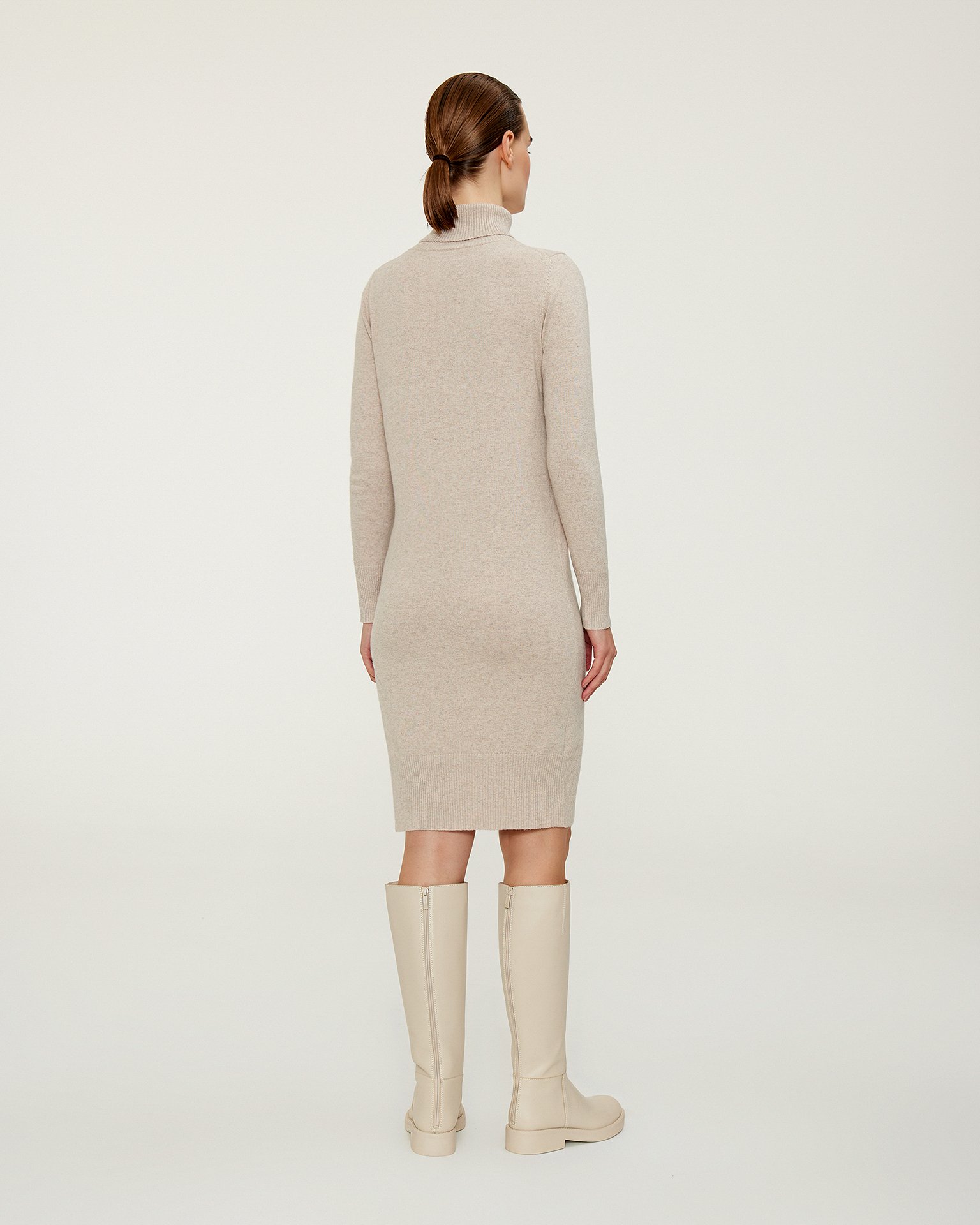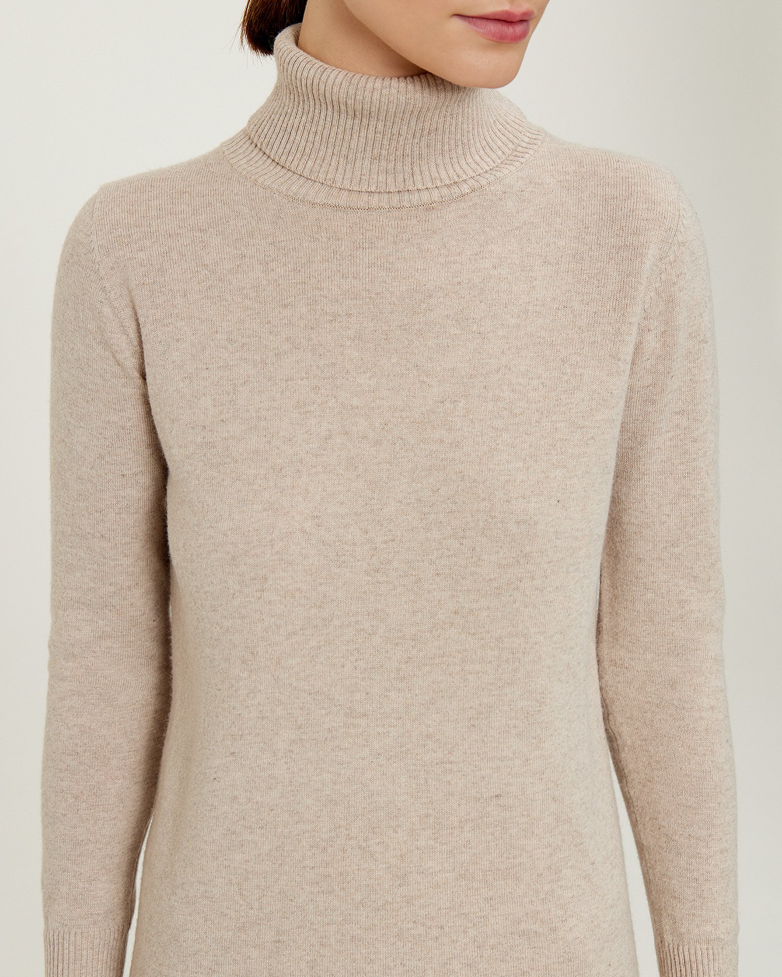 Уютное вязаное платье прямого кроя. Модель с высоким двойным воротником, длинными втачными рукавами и небольшими разрезами по бокам. Вязаное платье – один из базовых элементов модного гардероба. Такая модель любой цветовой гаммы подойдет для создания разных образов. Сочетайте их с любой обувью или носите с джинсами скинни или кожаными легинсами. Параметры модели: рост 175 см, грудь 82 см, талия 63 см, бедра 90 см.