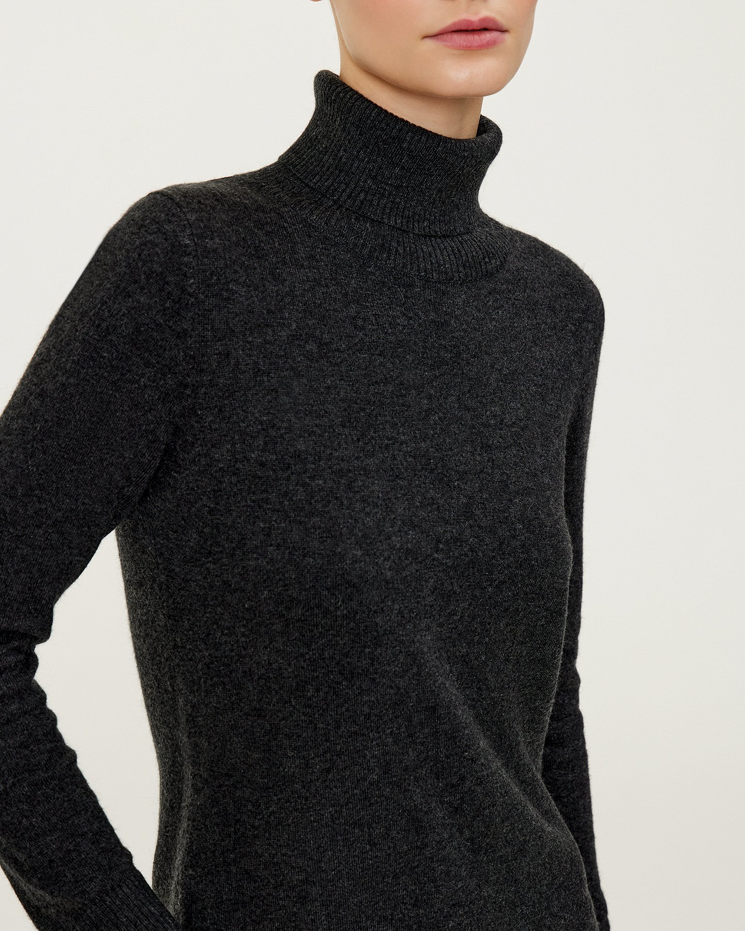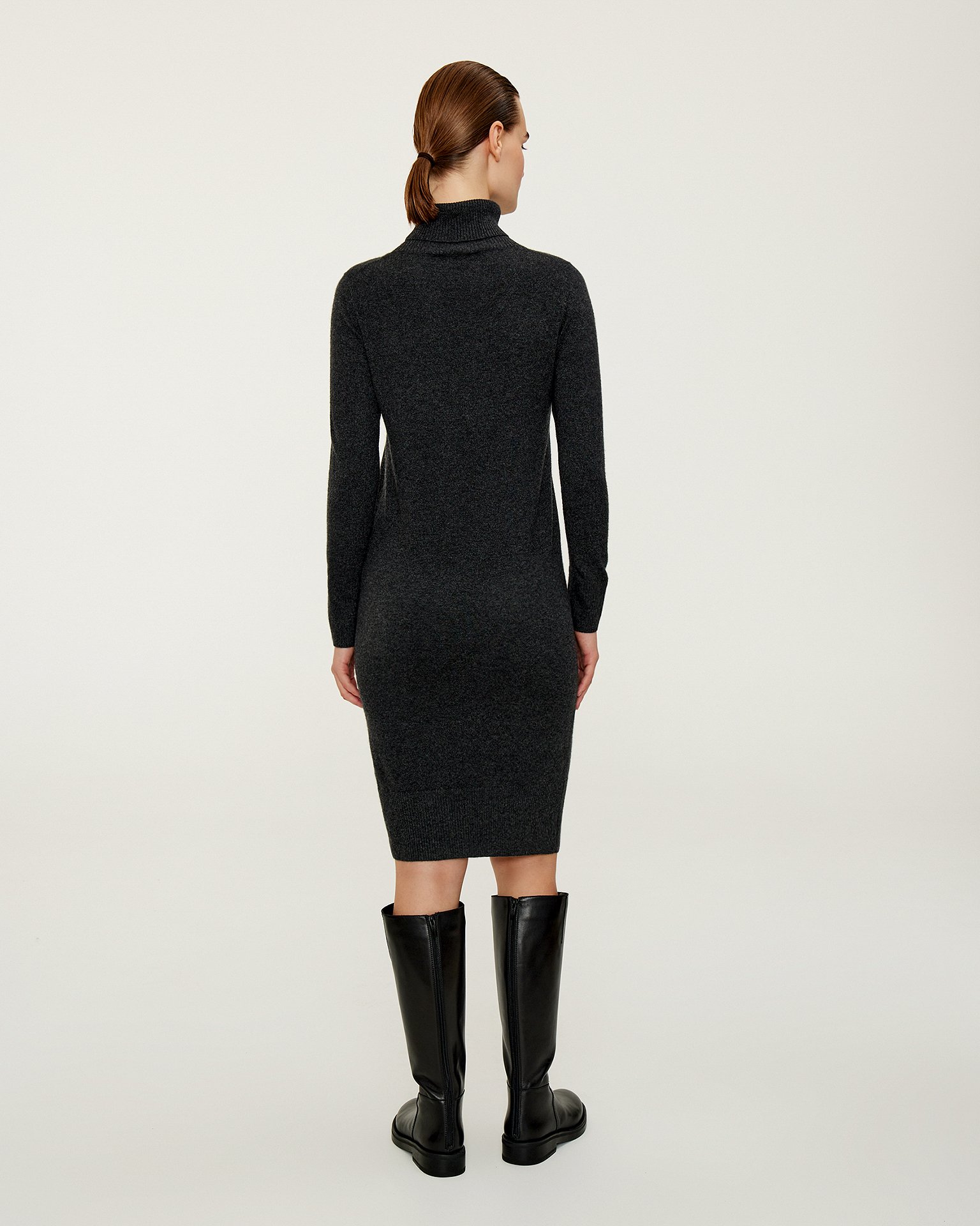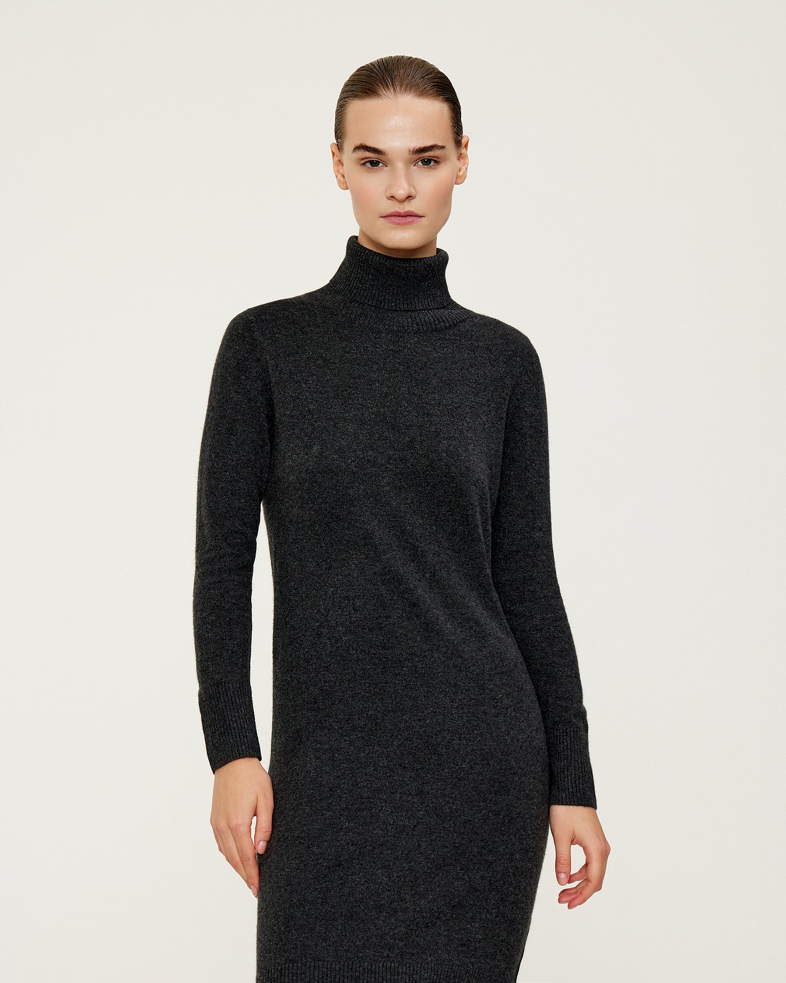 Уютное вязаное платье прямого кроя. Модель с высоким двойным воротником, длинными втачными рукавами и небольшими разрезами по бокам. Вязаное платье – один из базовых элементов модного гардероба. Такая модель любой цветовой гаммы подойдет для создания разных образов. Сочетайте их с любой обувью или носите с джинсами скинни или кожаными легинсами. Параметры модели: рост 175 см, грудь 82 см, талия 63 см, бедра 90 см.