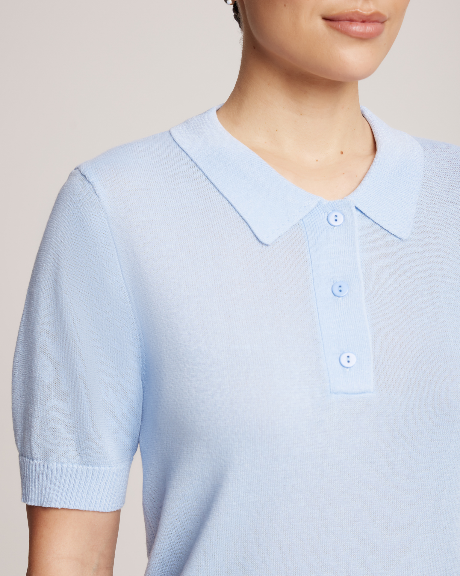 Поло выполнено в лаконичном и универсальном дизайне. Модель отличается следующими особенностями: Воротник классической формы, аккуратно обрамляет шею и подчёркивает линию лица. Планка с пуговицами расположена по центру груди — три пуговицы позволяют регулировать степень открытости воротника, добавляя индивидуальности образу. Короткие рукава с эластичными манжетами в рубчик обеспечивают комфортную посадку, не сковывают движения и придают изделию дополнительную текстурность.