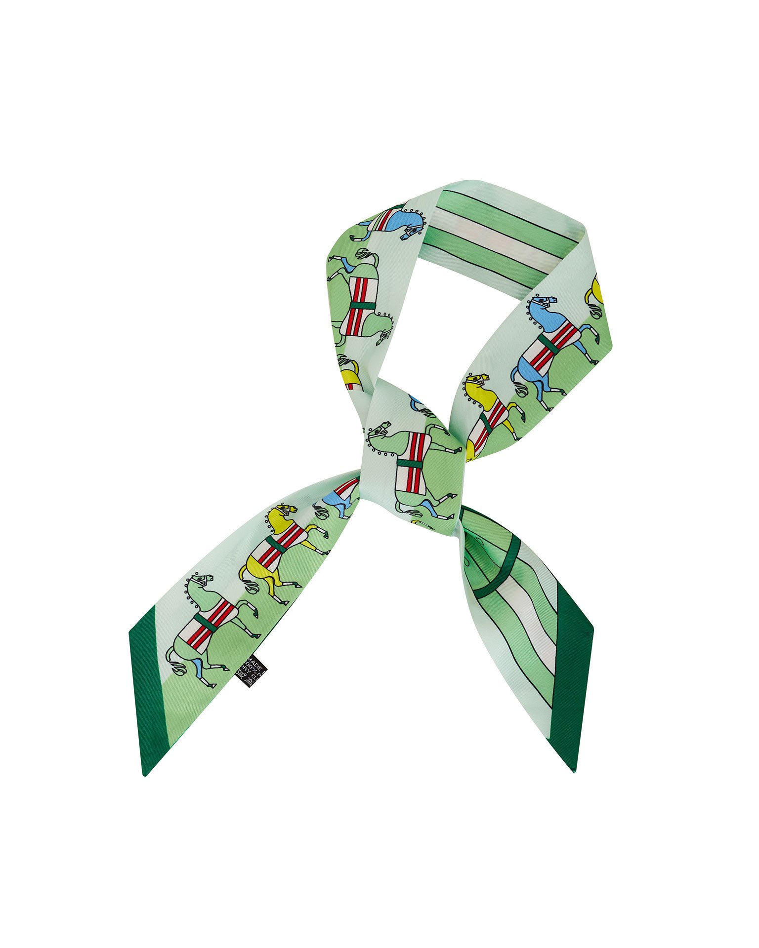 Яркая лента оригинальной расцветки. С одной стороны – стилизованные лощади, с другой – имитация пояса с пряжками. Атласная лента ярких оттенков – незаменимый летний аксессуар, который подойдет к разным образам от офисных до спортивных. Носите ее как повязку или используйте для создания пучка или хвоста, проденьте в широкую цепочку на шее или завяжите на запястье как браслет. Состав: 100% полиэстер