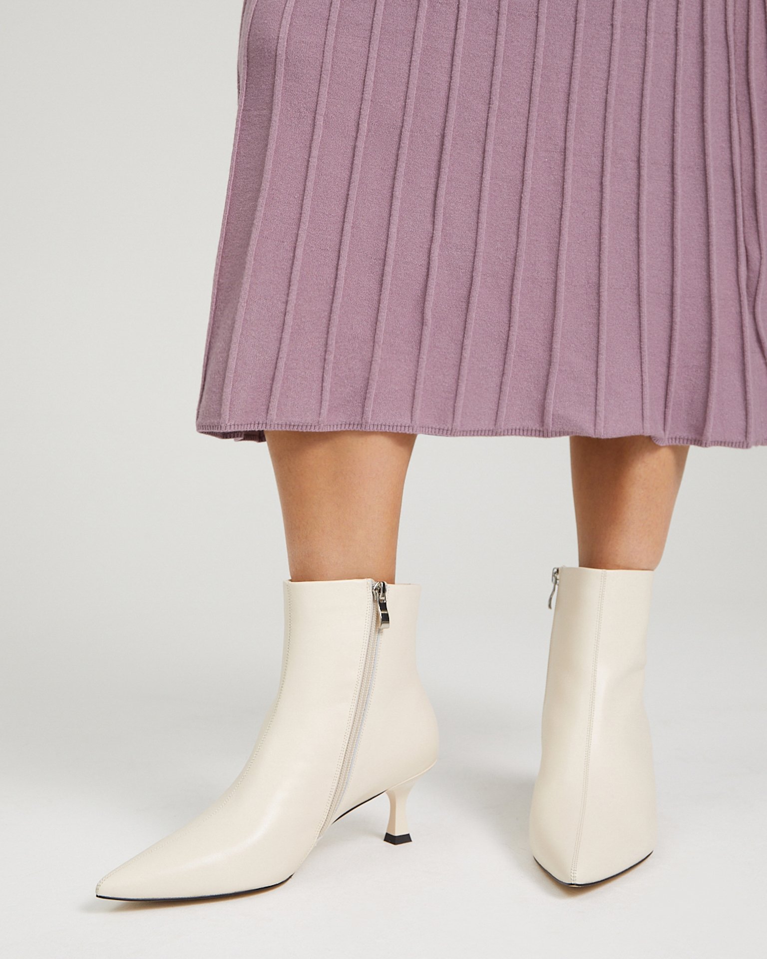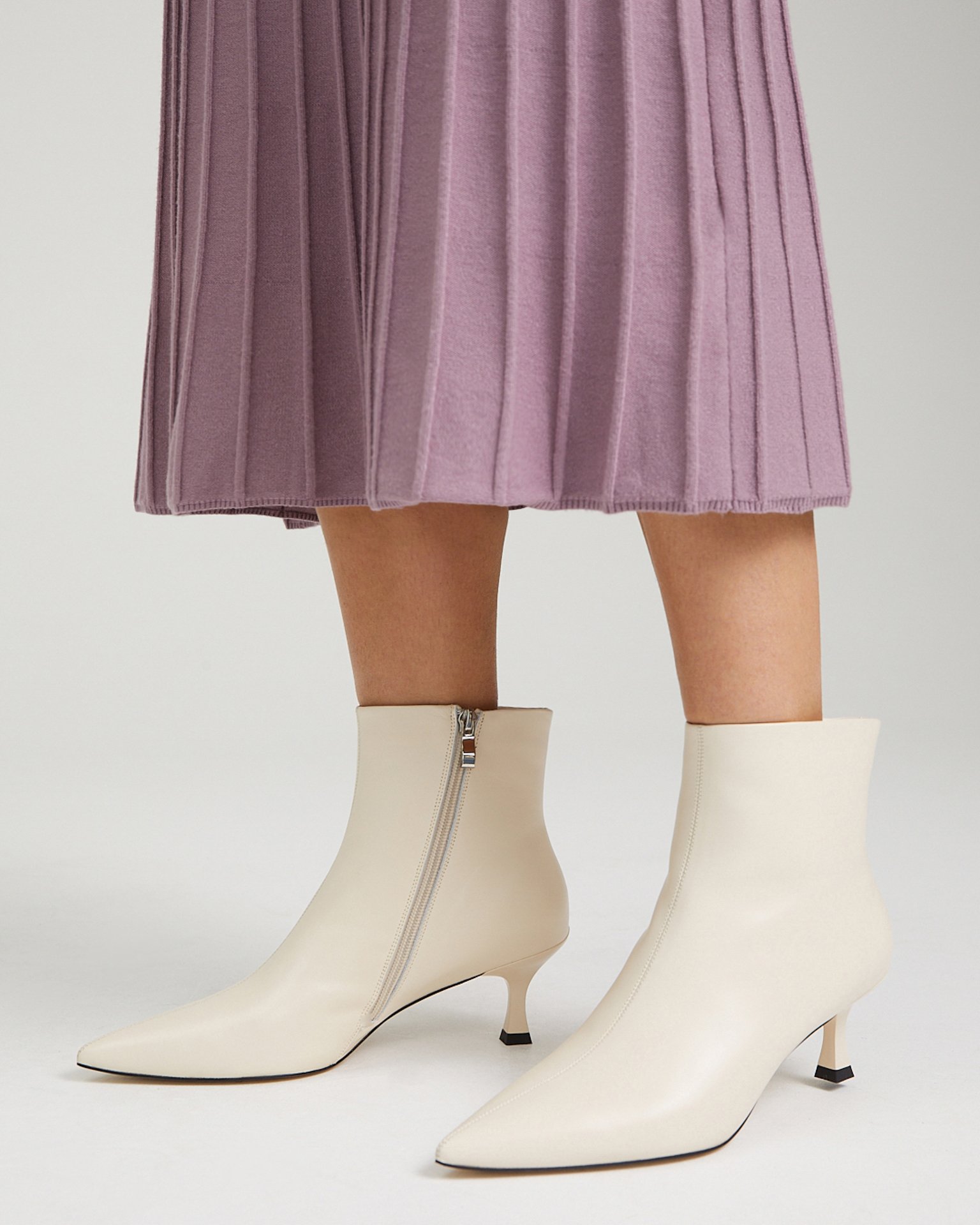Элегантные ботильоны из мягкой, плотной и долговечной натуральной кожи. Модель правильной высоты - чуть выше щиколотки - визуально стройнит ноги. Из деталей: заостренный нос, низкий устойчивый каблук, широкое голенище, аккуратная молния. СоставВерх: 100% натуральная кожаПодкладка: текстильПодошва: резина