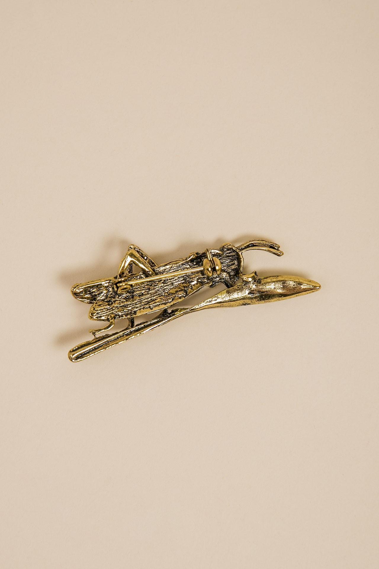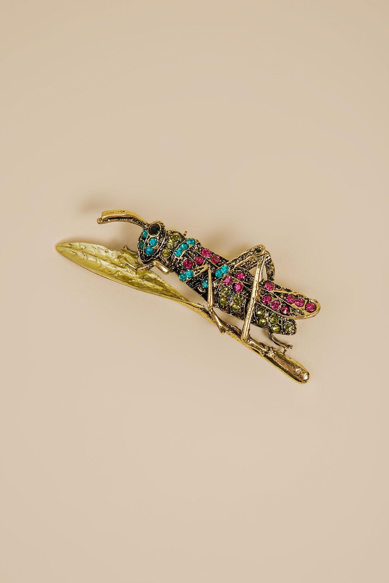 Брошь в форме кузнечика, оформленная разноцветными камнями