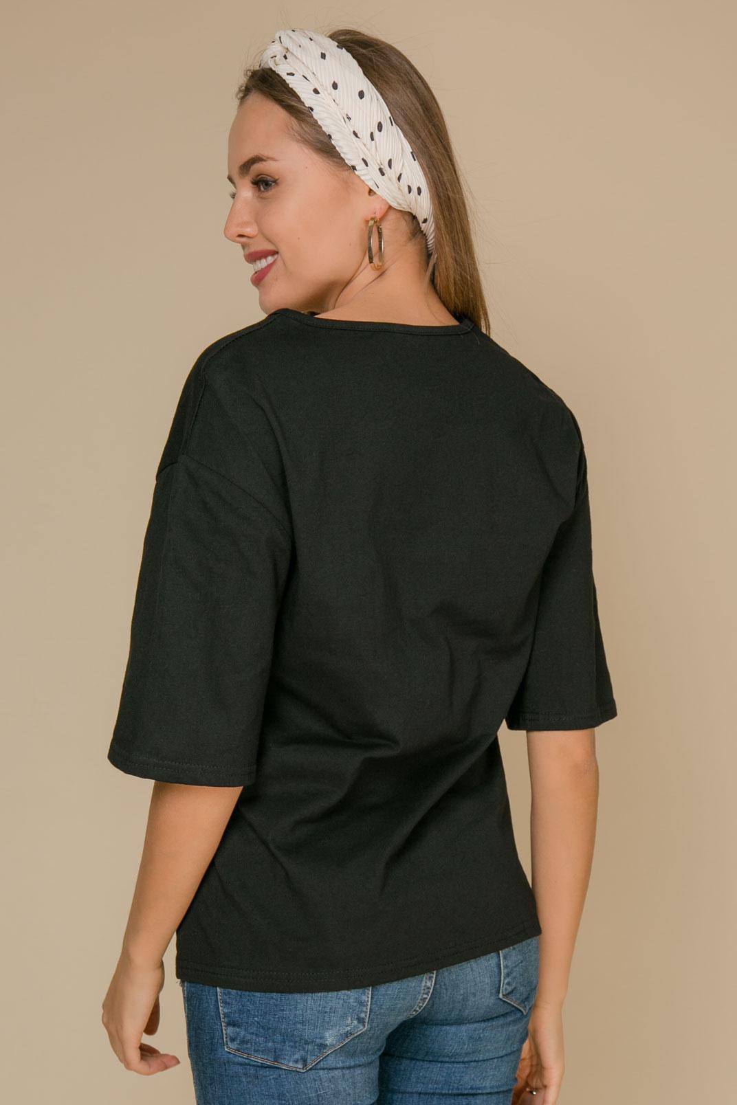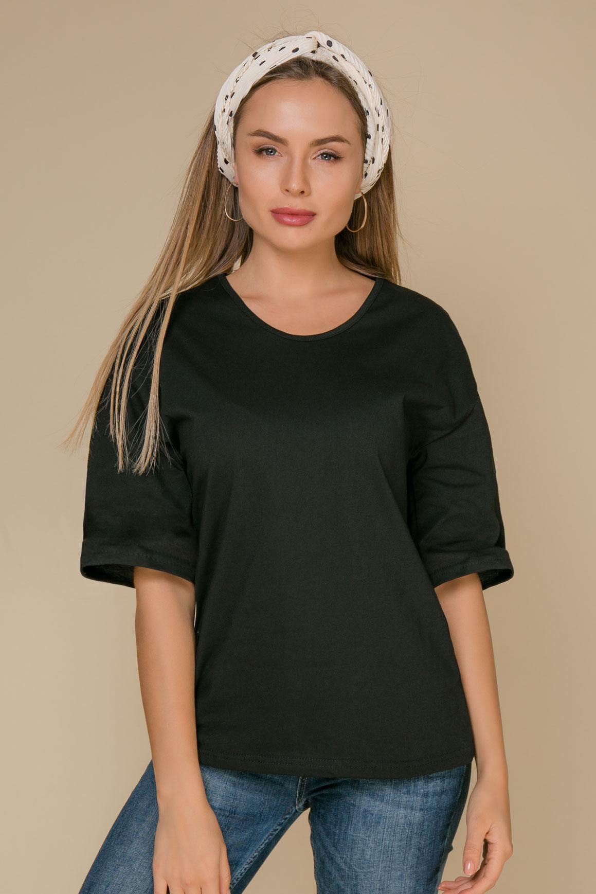 - Базовая футболка угольно-черного оттенка; - Состав : 100% хлопок; - Модель характеризуется свободным кроем и объемными рукавами-реглан; - <span>Параметры модели: рост 170 см, грудь 86 см, талия 63 см, бедра 89 см.</span>