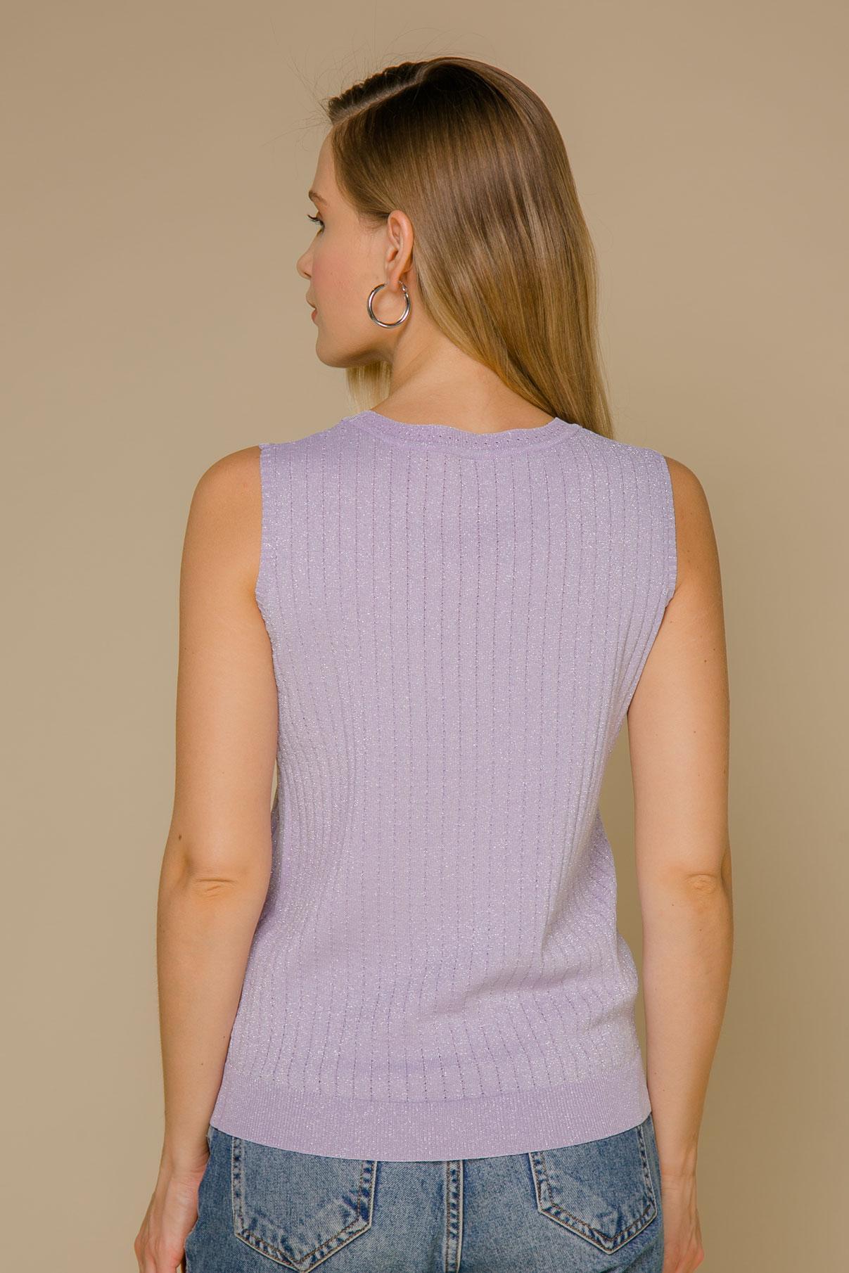 - Стильный топ нежного лавандового тона;- Модель характеризуется ненавязчивым мерцанием, благодаря вкраплению металлизированной нити;- Топ с открытыми проймами и круглым вырезом горловины;- Параметры модели: рост 167 см, грудь 85 см, талия 60 см, бедра 86 см.